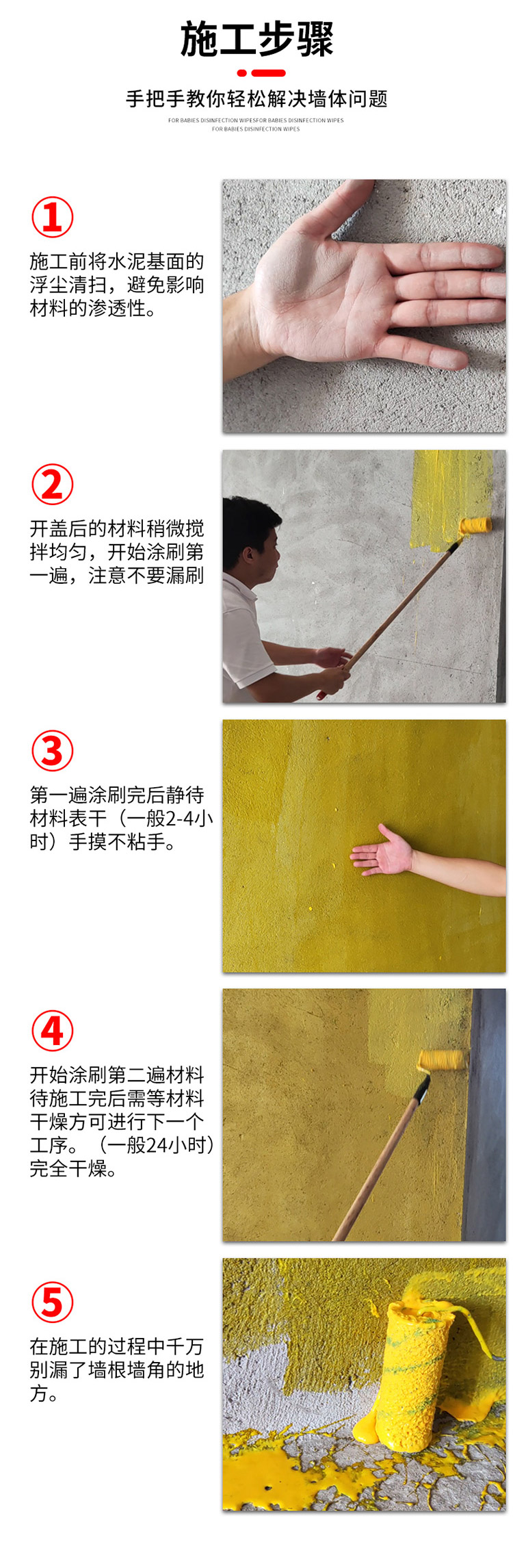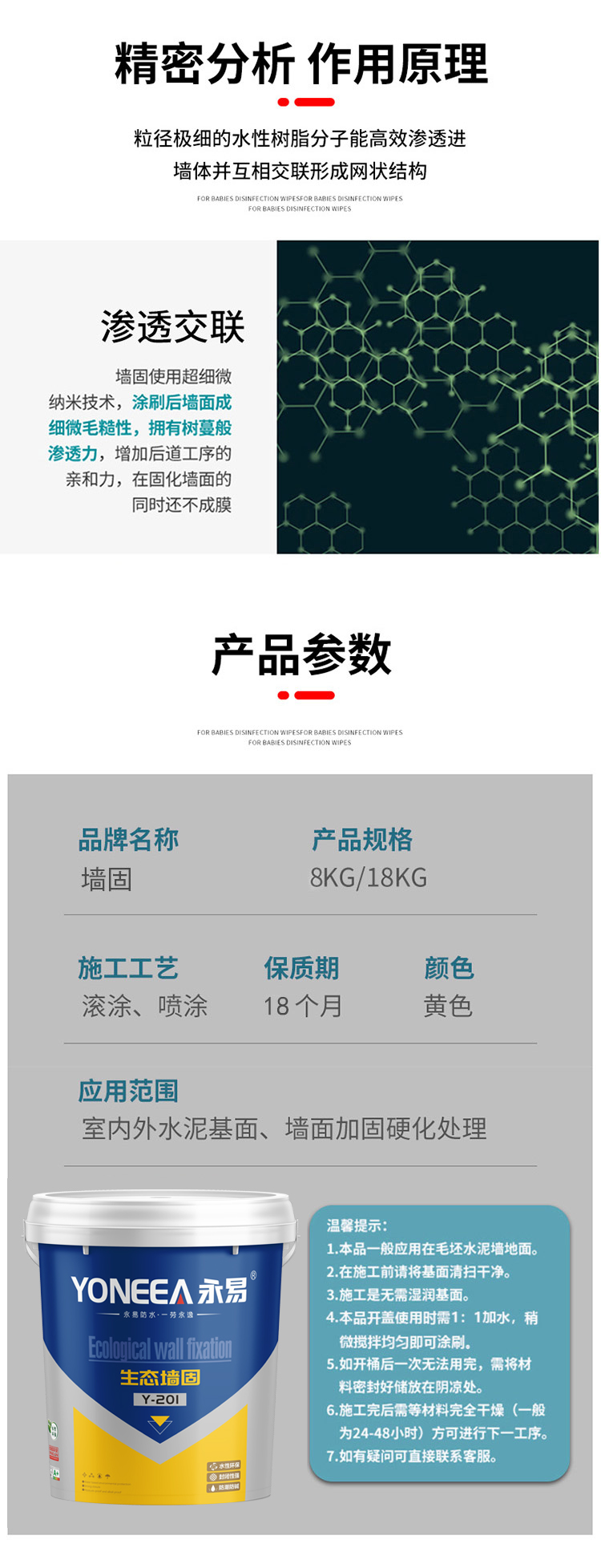 适用于室内外水泥基面、墙面加固硬化处理。